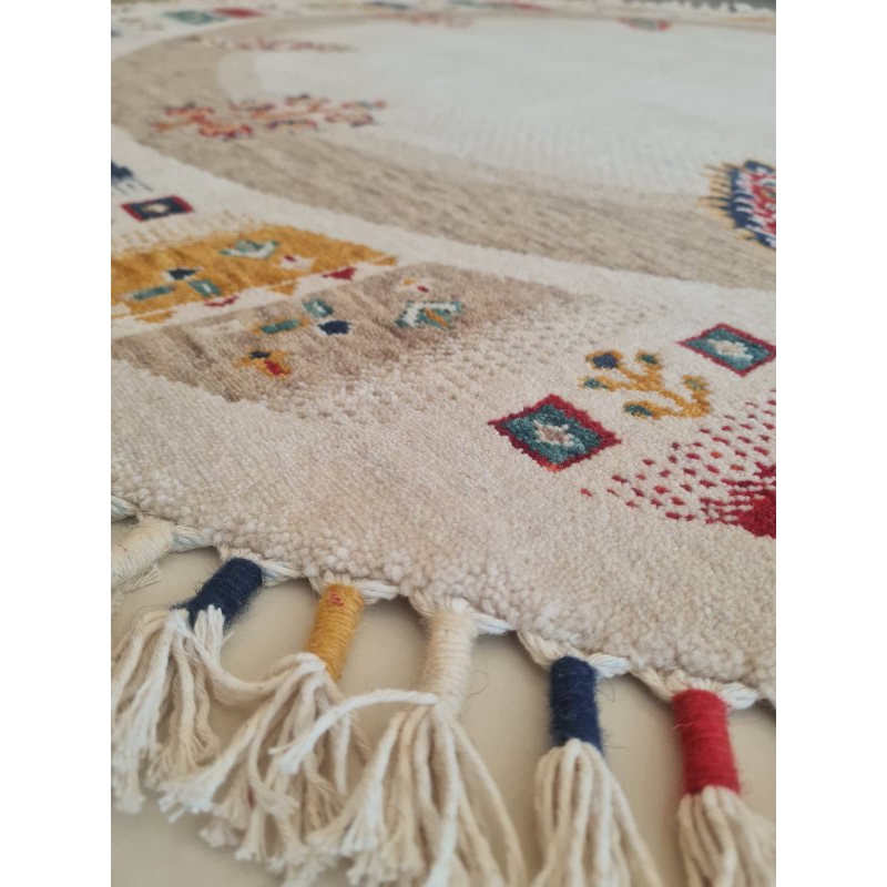 Ürün Detayları:%100 Doğal iplikleri ile özel tezgahlarda dokunan, dokuma sonrası el halısı işlemlerinden geçirilen, yoğun el emeğine sahip halı